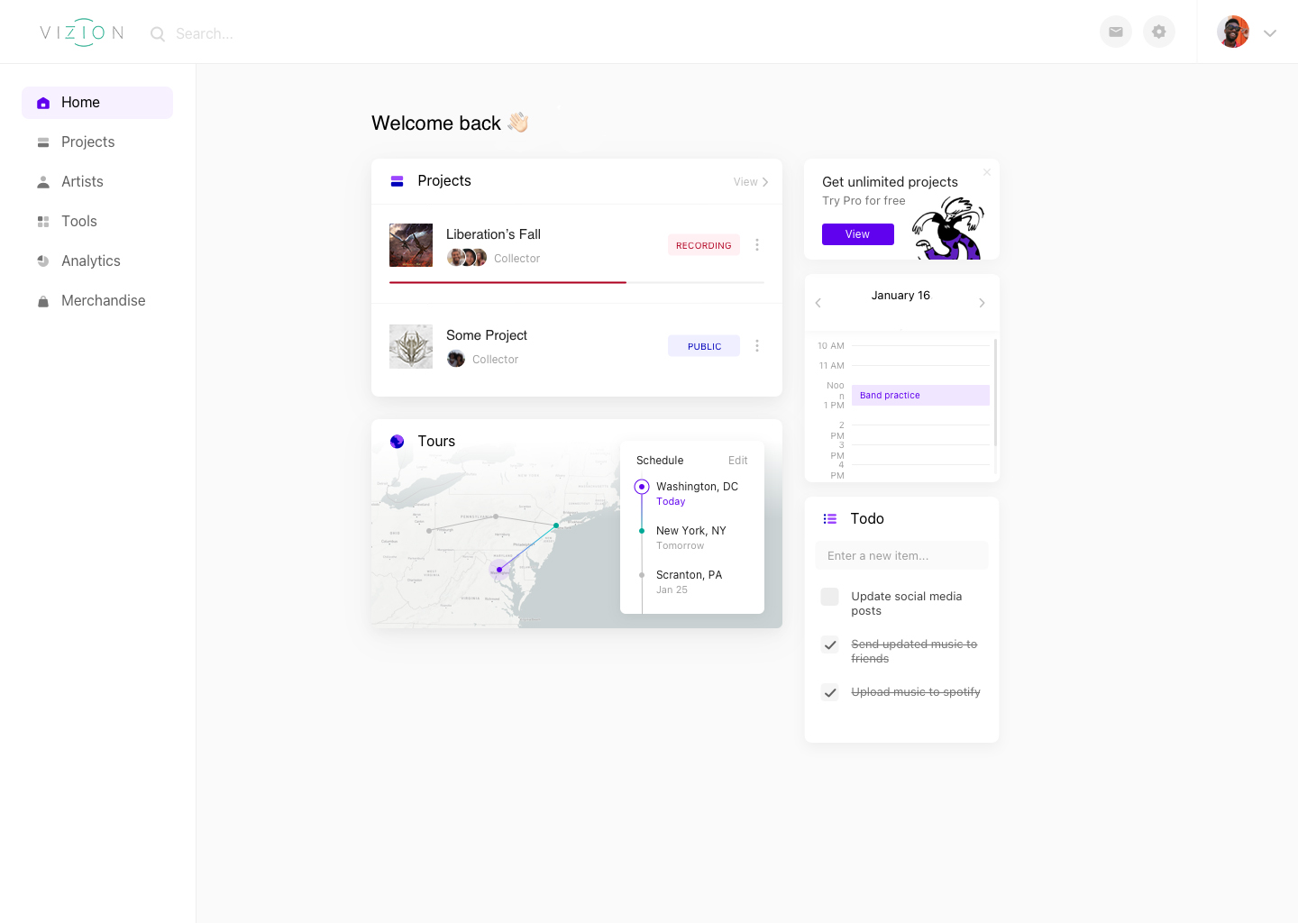 Explore our intuitive interface designed specifically for musicians and music professionals.