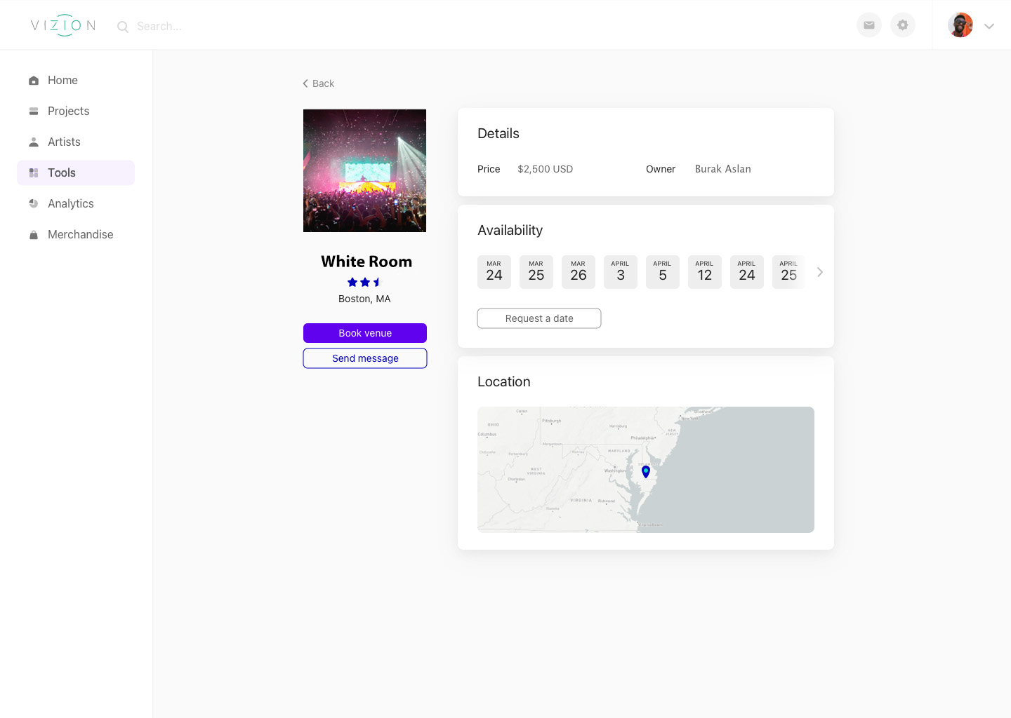 Venue booking and tour management